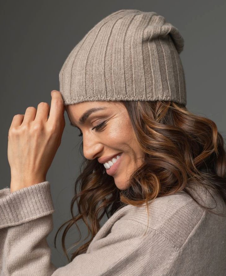 Iskusite vrhunsku udobnost i nenadmašnu toplinu. Ova kapa izrađena je od 100% italijanskog kašmira, izuzetno meka na dodir i nežna prema koži. Neutralna bež nijansa savršeno se uklapa uz svaki kaput, džemper ili šal čini je idealnim izborom za suptilnu eleganciju tokom jeseni i zime. Ribani uzorak dodaje teksturu dok čuva minimalističku sofisticiranost.